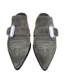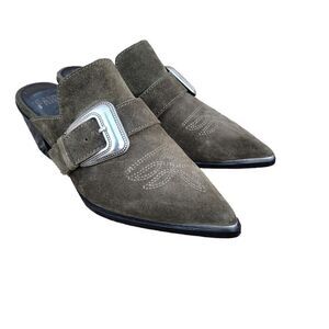 Paige Womens Mule Size 8.5 Black Suede Western Buckle Bohemian Kensington Heels