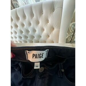 Keywords: Paige jeans, skinny fit, dark wash, women's denim, size 32, blue jeans, five-pocket, zip fly, button closure, casual wear, pre-owned jeans.