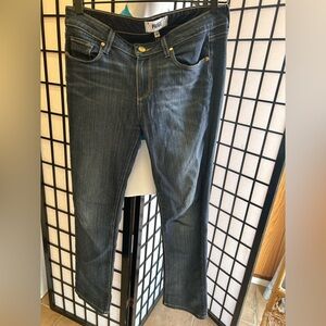 Discover the perfect fit with Paige's Skyline Straight Jeans in a classic dark blue. These jeans offer a blend of comfort and style, ideal for any occasion.