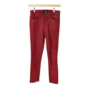 Paige Womens Size 25 Hoxton Ankle Peg Jeans Red Ankle Zip Raw Hem Pockets Stretch