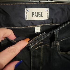 Awesome Hidden Hills boot cut jeans from paige. Stretching in the lap area as shown. Heavy jeans with lots of life left. Longer length perfect for wearing with wedges or heels.