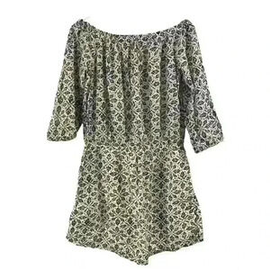 Paige clover print off the shoulder summer gathered floral dress with buttons