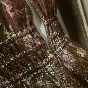 Shimmering metallic threads draw the eye in to this opulent silk-blend dress framed with balloon sleeves and a ruffled hem.