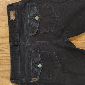 Paige navy blue corduroy cropped pants size 26" button hem stretch