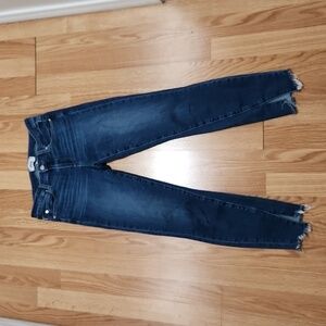 Paige verdugo ankle with raw hem and inseam fray slit in dark wash jeans