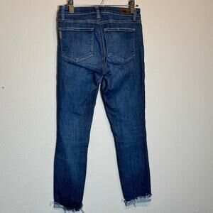 Paige Verdugo ankle blue denim jeans with cuffed raw hem Sz 27 US 4 EUC