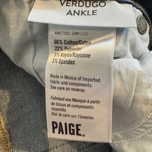 Paige womens jeans Verdugo ankle blue stretch denim cuffed raw hem Sz 27 US 4