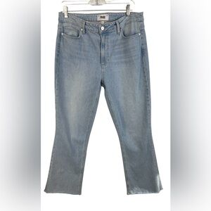 Paige women’s light wash frayed edge Collete Crop Flare jeans. Size 31