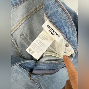 Paige women’s light wash frayed edge Collete Crop Flare jeans. Size 31. EUC. No flaws. Zipper & button closure. No stretch- 98% cotton, 2% elastane.