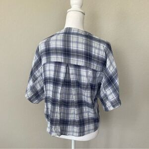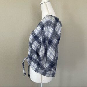 Paige Baylee Plaid Tie Front Cotton Blend Top In Eventide Multi. Blue and white plaid time front short sleeve flow he top. Size small excellent used condition like new.