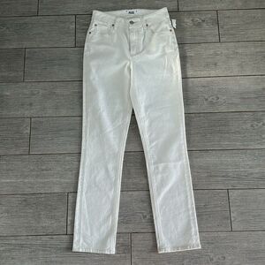 Brand new with tags! These slim straight jeans come in the perfect autumn-to-spring white wash. Designed in their buttery comfort stretch denim, the mid rise design has crossed belt loop in the back for an unexpected detail.