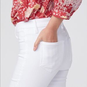 ultra skinny cropped jean that is slim from the leg down to the ankle, hugging every curve along the way. This pair comes in a crisp white wash with tonal buttons and a pronounced outseam. Finished with a zip fly and single-button closure. It's flattering, lightweight, and lends good coverage.