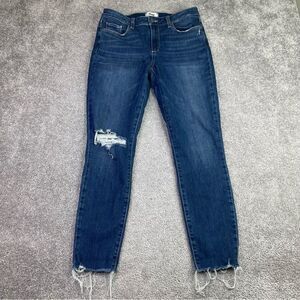 Paige Jeans Women's 30 Blue Skinny Mid-Rise Dark Denim Verdugo Ankle Distressed