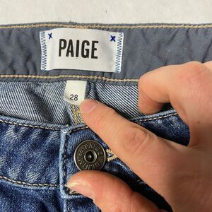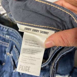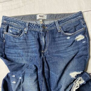 Paige Jimmy Jimmy skinny boyfriend jeans. Size 28. Destroyed look via factory distressing. See detail photos of destroying. Some threads blown out.