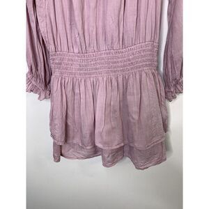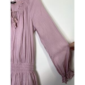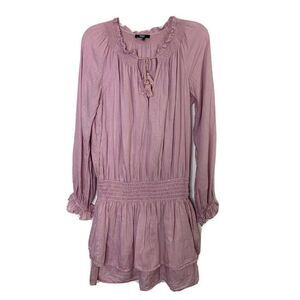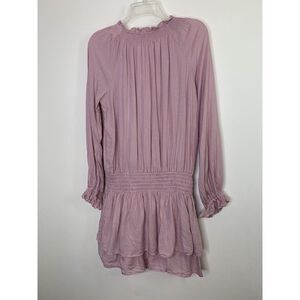 Paige Lemay Peasant Mini Dress Pale Mauve Lavender Sz M (size tag removed, measurements below) Womens Tiered Ruffle Blouson Elastic Waist Modal 100% Cotton
