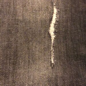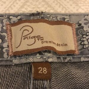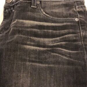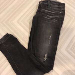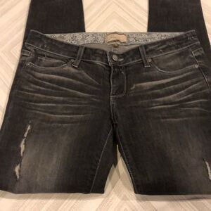 Paige Premium Denim Jeans. Dark Gray. Distressed with rips down the leg. Gently worn. Inseam 31”. LB.