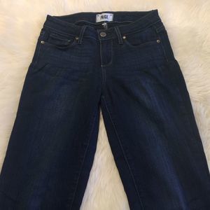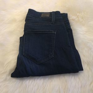 Pre loved with signs of wear like stretch or pull should be untouchable when fitted. Size 26. Dark wash skinny jeans.