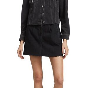 Cut from denim with a raw hem, Paige’s Sade skirt features pleating for shape.