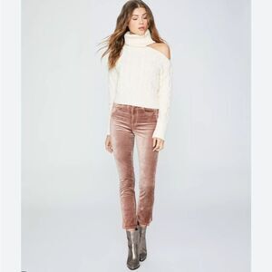 Cindy is the high-rise, perfectly straight fit that is lean through the leg and finishes at the ankle. In a warm neutral hue, this velvet pair is finished with a twisted seam and an unexpected slit detail to show off your favorite shoes. The ultra-soft, lustrous velvet is fabricated with plenty of stretch for a comfortable and flattering fit.