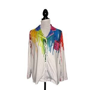 Paint Spill PJs Set. EUC. No flaws or stains. Paint Spill PJs Set in White features a playful splash of rainbow colors for a fun, artsy vibe. The lightweight, soft fabric offers all-night comfort, while the relaxed fit makes it perfect for lounging or sleeping in style. Includes matching top and bottom in size Medium. A cozy and colorful addition to your sleepwear collection.