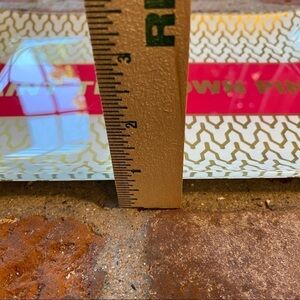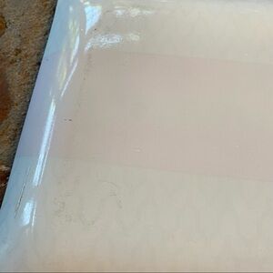 Paint the Town Pink with this adorable decorative dish. Great on its own or to hold some of your precious items. Measures almost 10 inches across and 7 inches tall. Has a little depth. Some marks on the bottom as pictured. White with pink and gold accents.