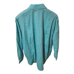 PaintColors Women's Teal Long Sleeve Button Linen Cotton Blend Shirt Size XXL