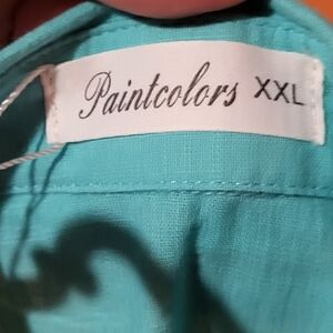 PaintColors Women's Teal Long Sleeve Button Linen Cotton Blend Shirt Size XXL NEW with tags! Chest Measurement is 27"