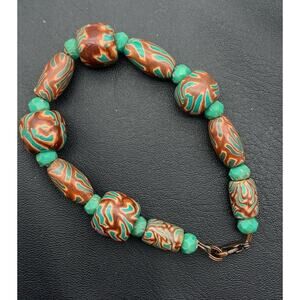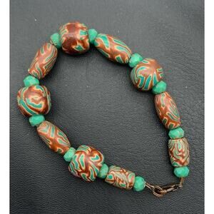 Painted Brown & Turquoise Wood With faux Turquoise Beads Bracelet Boho Beauty