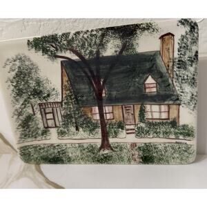 Painted Cape Cod House Trinket Dish Wall Hanging 8x5” Ceramic Signed