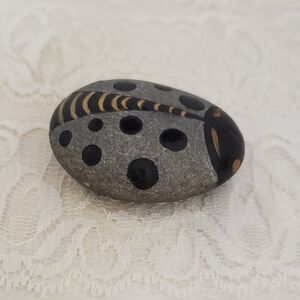 Painted Elegant Black Gray and Gold Ladybug Rock, hand painted ladybug Rock