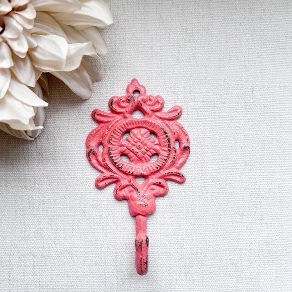 Painted Flower Wall Hook Cast Iron Coat Hook Towel Hook Jewelry - Coral Blush