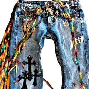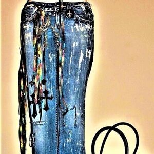 Painted Jeans Miss Me Ltd Ed Flare Jeans Ribbon, Belts & Charms, 26