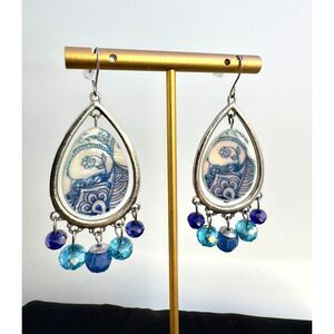 Exquisite hand-painted mother of pearl earrings with a delicate filigree design. Theyre in good conditon with minimal wear.