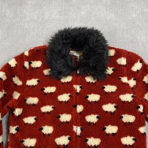 Painted Pony Jacket Womens Small Red Sheep Pattern Faux Fur Collar Made USA Cozy