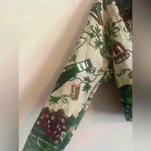 Elevate your wardrobe with this unique Painted Pony tapestry jacket featuring a vibrant wine and grapevine design. This eye-catching statement piece showcases bottles, glasses, and rich green vines in a thick, textured woven material that’s both cozy and collectible.