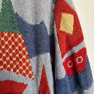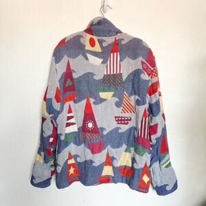 Painted Pony Tapestry Sail Boat Nautical Button Jacket M/L Blue Coastal Cottage