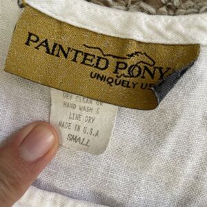 Painted Pony White Linen Sleeveless Crop Blouse Size S Boxy Shell Tank Top Vtg
