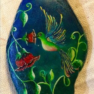 Hand painted rocks/stones. All of these have sold, except for flowers. I can paint one for you! ;) As you can see, hummingbirds are a favorite but I can also do other flowers or animals within reason. If interested just tell me what you would like and I’ll be happy to let you know if I can do it. Prices vary but start around $30 depending upon complexity and size/weight. Free shipping!