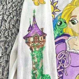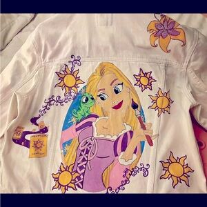Rapunzel and pascal tangled inspired jacket. Hand painted and rhinestoned. Can be made in other sizes.