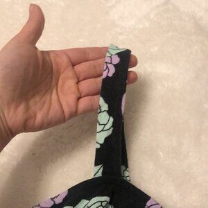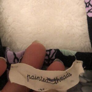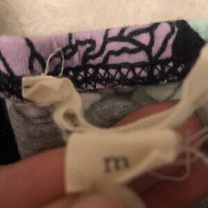 Painted Threads Floral Crop Top Size Medium. In good used condition, it has a flaw in the interior seam where some thread is missing (pictured). Short crop top with mint and lilac flowers in a black background.