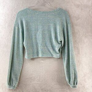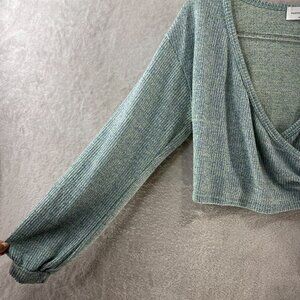 Painted Threads - Urban Outfitters Cropped Sweater Women's Medium Faux Wrap Blue Green Lightweight Knit