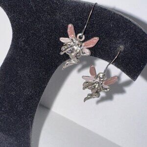 These Dangle earrings are shaped like Fairies. I have painted their wings in a bronze and taupe metallic shades. I made a bunch of these for a lady and she picked the ones she needed for her event and I was left with a bunch she said she didn't need. She needed 50 pairs, I made 50 pairs, and she only bought 25. I have a bunch of variations I made she didn't buy. I hope somebody else will enjoy these cute, yet simple pewter fairy dangle earrings with painted wings. These are painted with Enamel Paint. The charm is pewter but the ear wires are sterling silver.