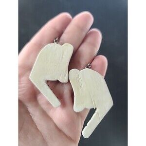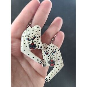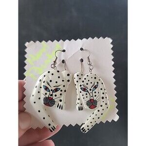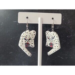 Painted Wooden Dangling Wild Cat Earrings Vintage Costume Jewelry New Old Stock