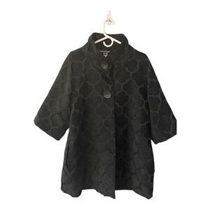Painted Pony Women Coat Medium Black Lined Jacket 3/4 Sleeves Pockets