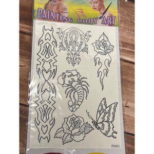 A body art kit designed for creative expression and temporary personalization. Includes multiple intricate design options and a comprehensive color palette for versatile artistic application.