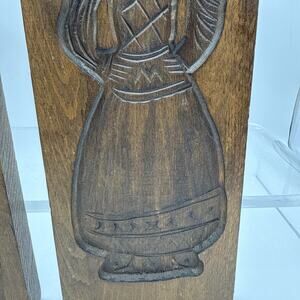 Pair 14” Vintage Wooden Cookie Molds German Dutch Carved Wood Wall Decor Kitchen