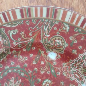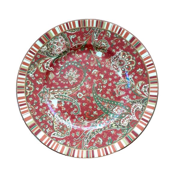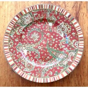 Pair (2) 222 Fifth Maharana Plates Lunch 9" bohemian red paisley green gold tone
