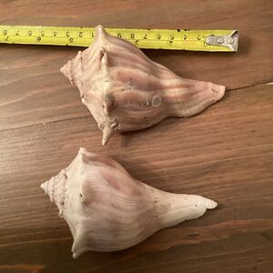 Pair 2 Natural Conch Whelk Shells Beach Seashells Vintage Approx 5” Set of 2