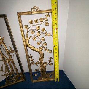 Pair 2 Vtg MCM NAN-KING Asian Wall Art 20" Gold Metal Flower Sculpture Hong Kong