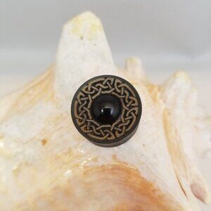 This is for one PAIR (2) wood plugs with onyx stone center and decorative Celtic knot design.